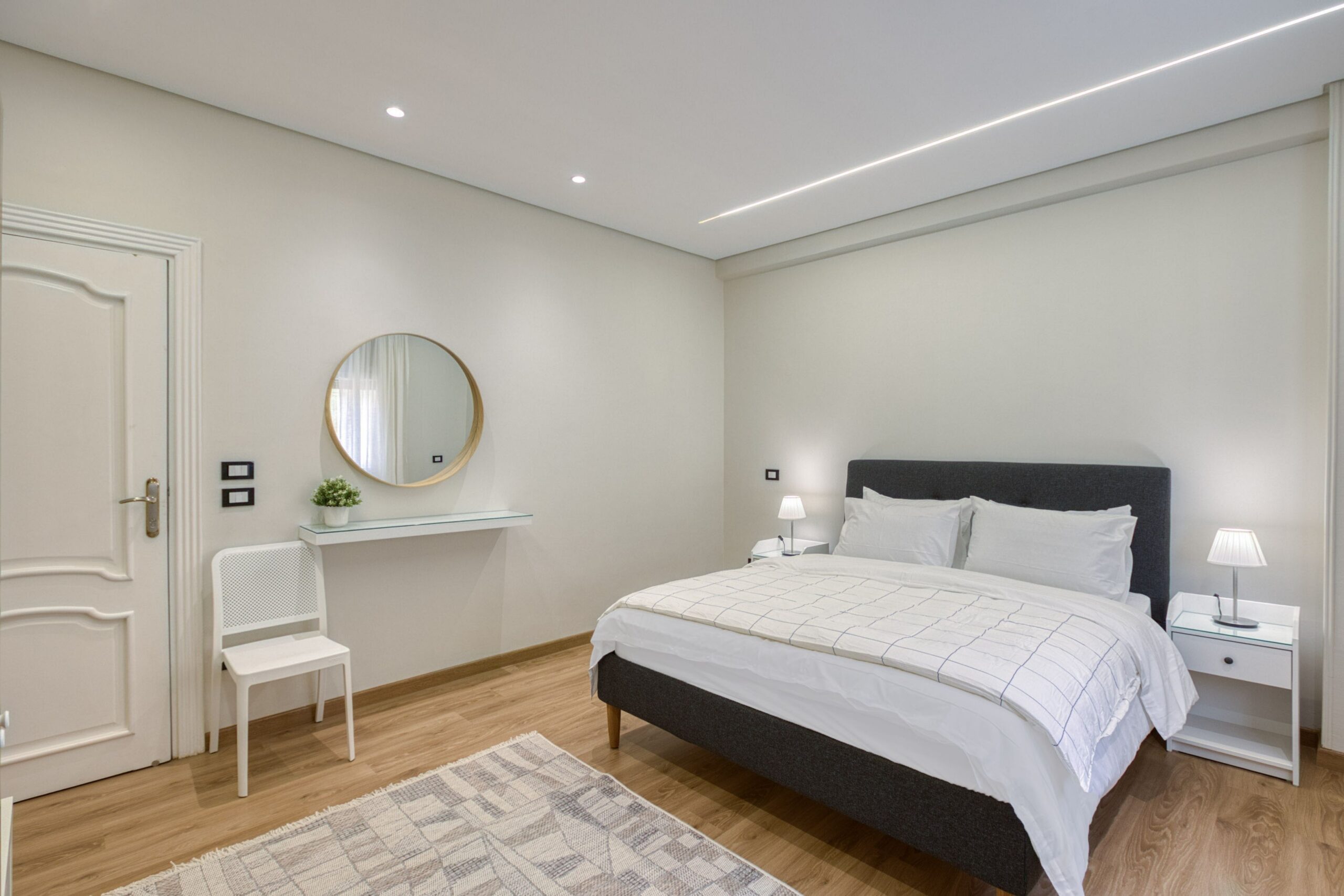 A serene bedroom, featuring:
